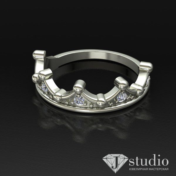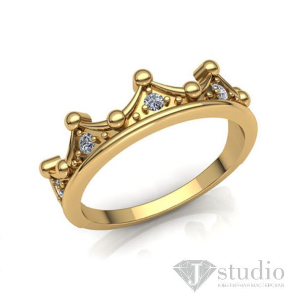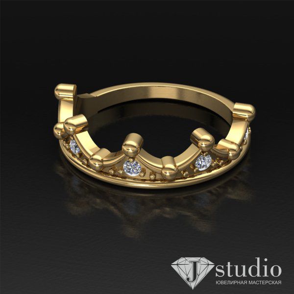 Кольцо из белого или желтого золота в форме диадем. Лаконичное по дизайну, но органично вписывающееся в образ.