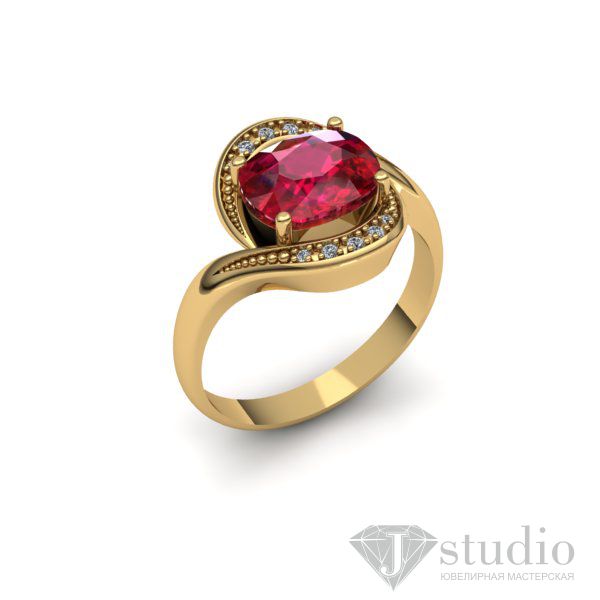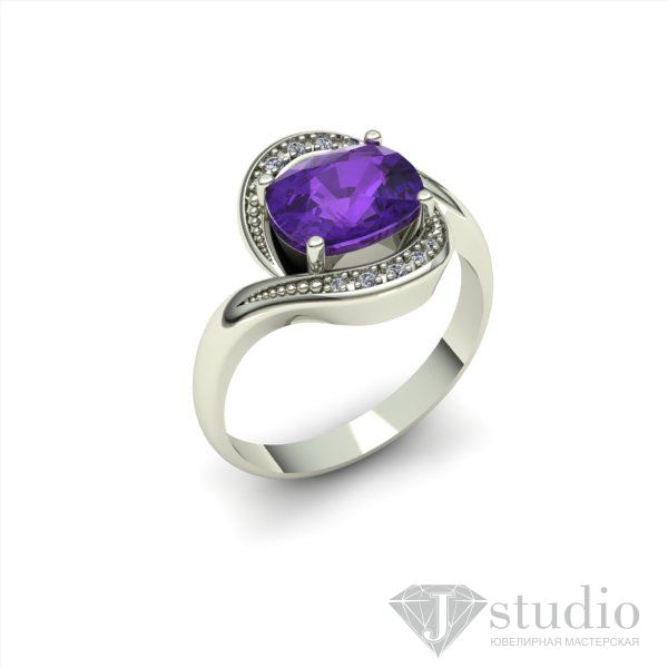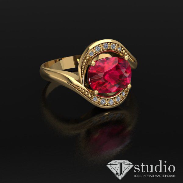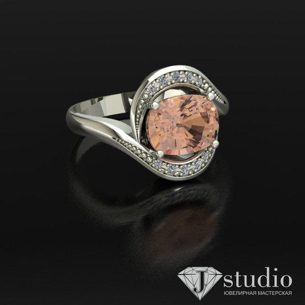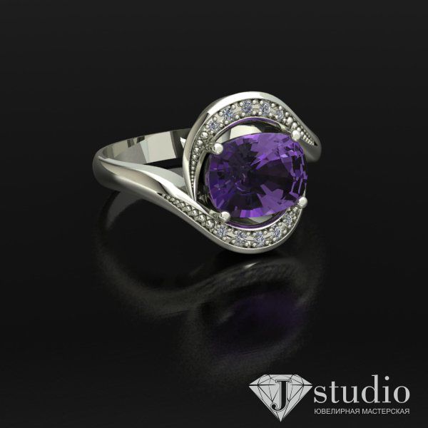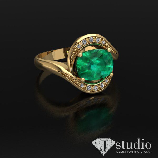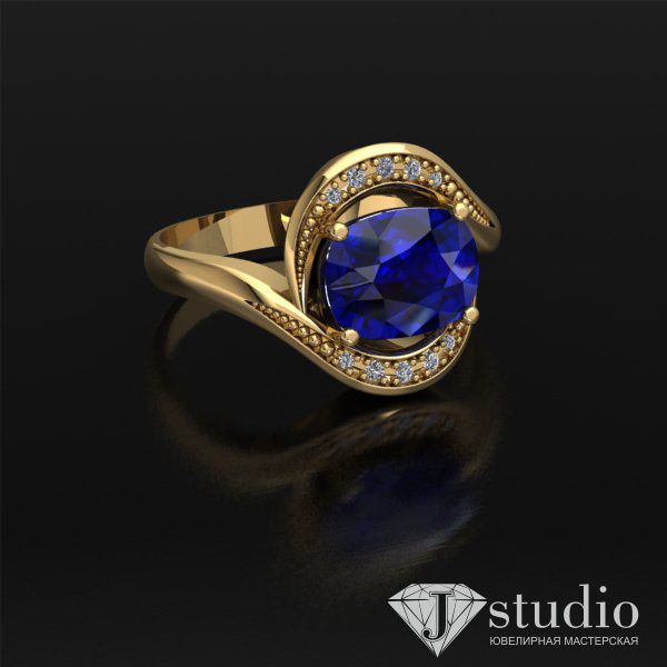 Выразительное кольцо с рядами камней, подчеркивающими красоту центрального элемента.