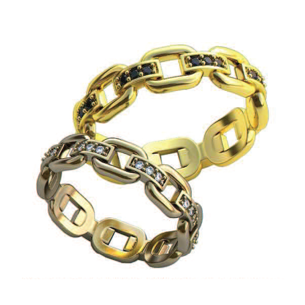 Возможно изготовление в серебре и золоте различных цветов, а также изменение дизайна по желанию заказчика.
