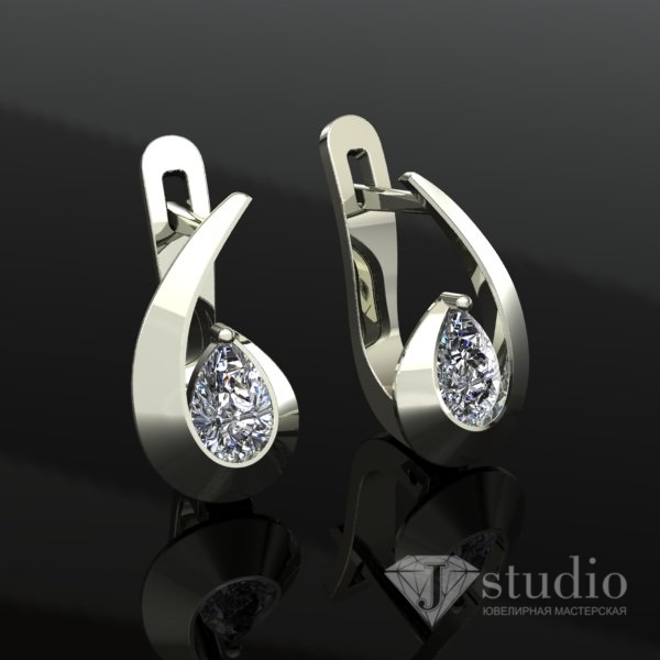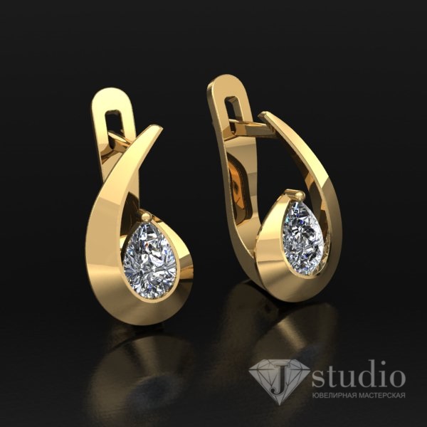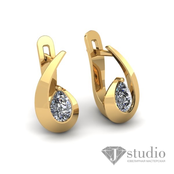 Золотые серьги со вставками огранки “груша”. Возможно изготовление со вставками цветов на ваш выбор.
